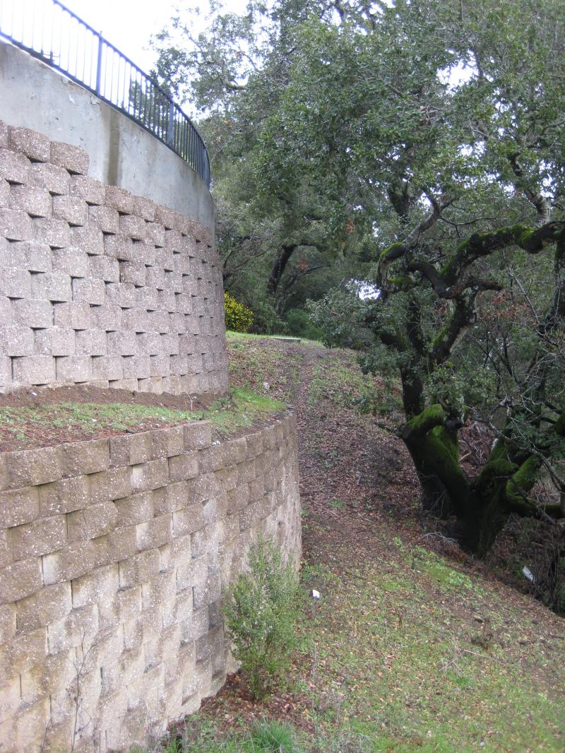 Foundation Soils - Block walls are typically not effective choices where the ground below the wall slopes down steeply, although the block walls can be constructed on a drilled pier supported pad to achieve beautiful and stable results.